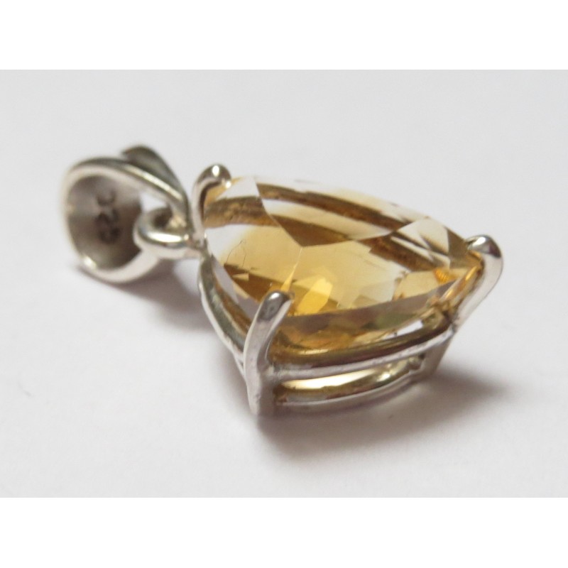 Anhänger Citrin (erhitzt) facettiert 11x24 mm, 925er Silber