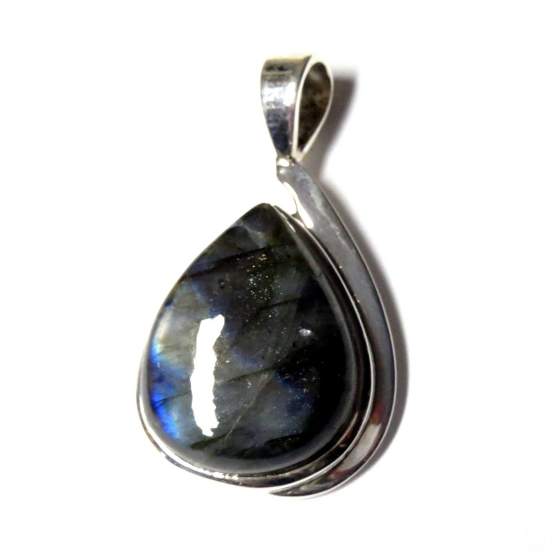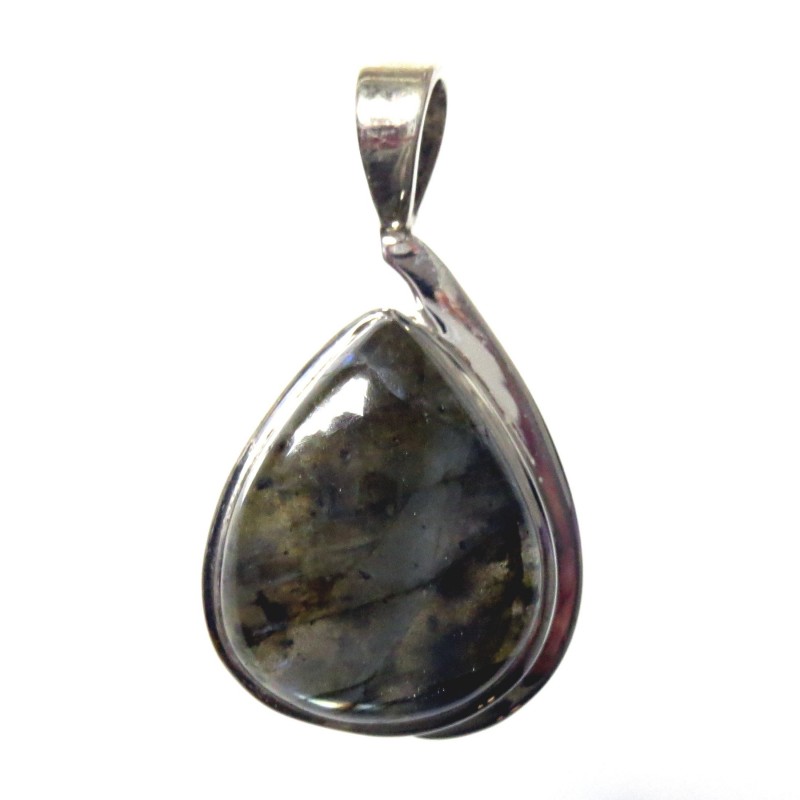 Anhänger Schlaufe Labradorit grün Träne, 20x35 mm, 925er Silber