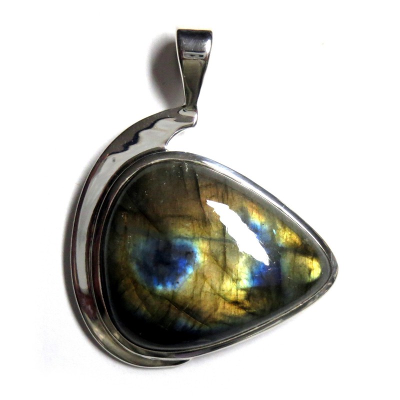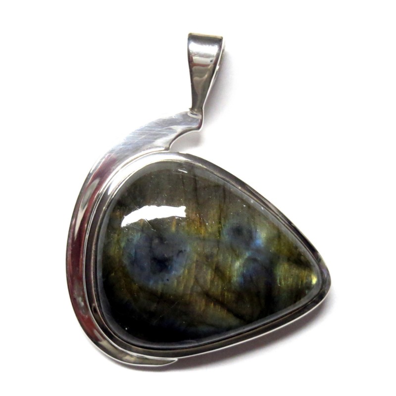 Anhänger Schlaufe Labradorit grün Freeform, 31x40 mm, 925er Silber