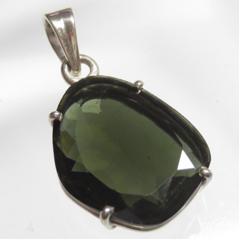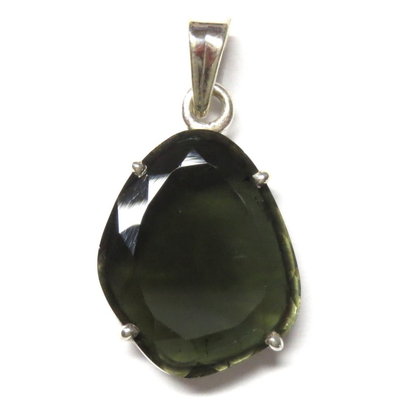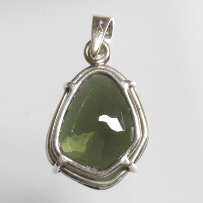 Anhänger Turmalin grün facettiert Freeform, 19x33 mm, 925er Silber