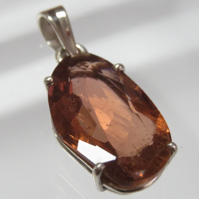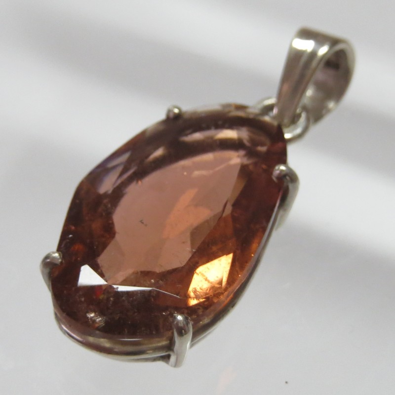 Anhänger Turmalin rot facettiert Freeform, 14x34 mm, 925er Silber