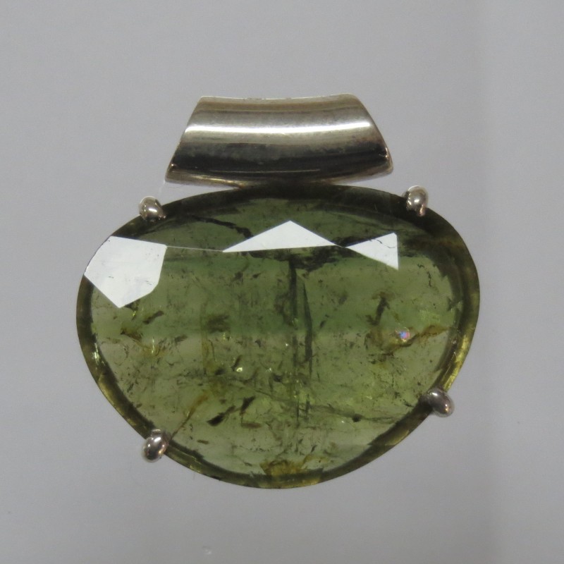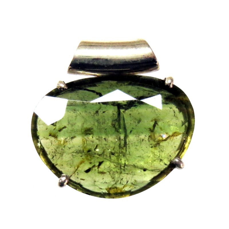 Anhänger Turmalin grün facettiert Pipe Freeform, 24x24 mm, 925er Silber
