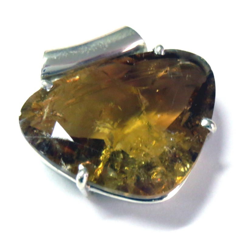 Anhänger Turmalin gelb facettiert Pipe Tropfen, 26x26 mm, 925er Silber