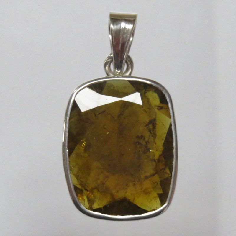 Anhänger Turmalin gelb facettiert Rechteck, 18x32 mm, 925er Silber