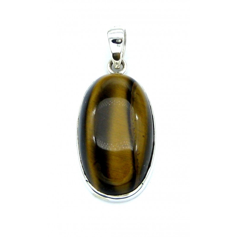 Anhänger Tigerauge Oval, 22x42 mm, 925er Silber