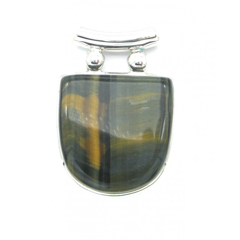 Anhänger Tiger-Falkenauge Pipe Schild, 28x40 mm 925er Silber