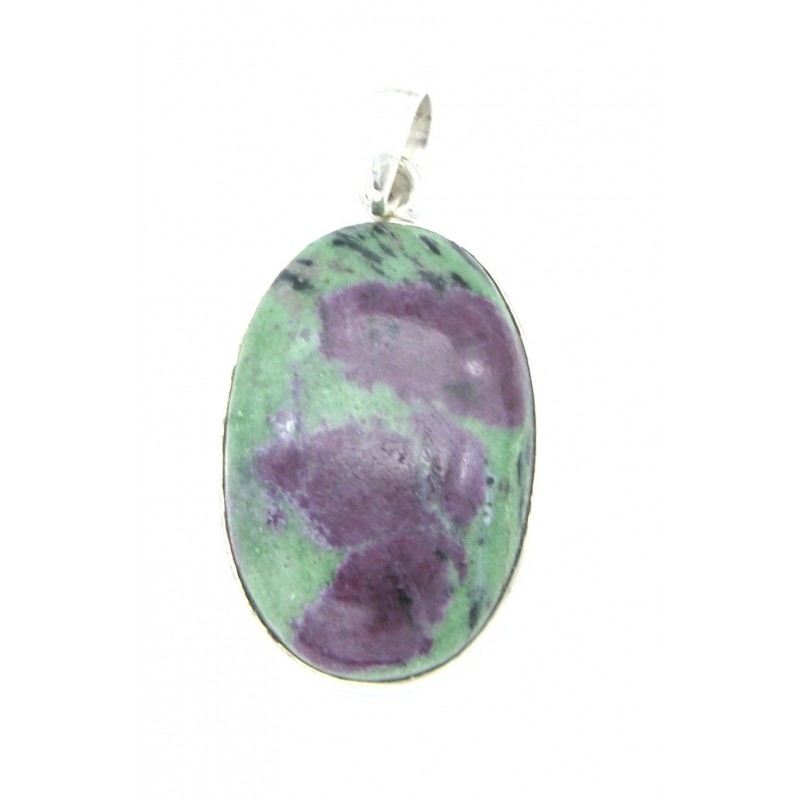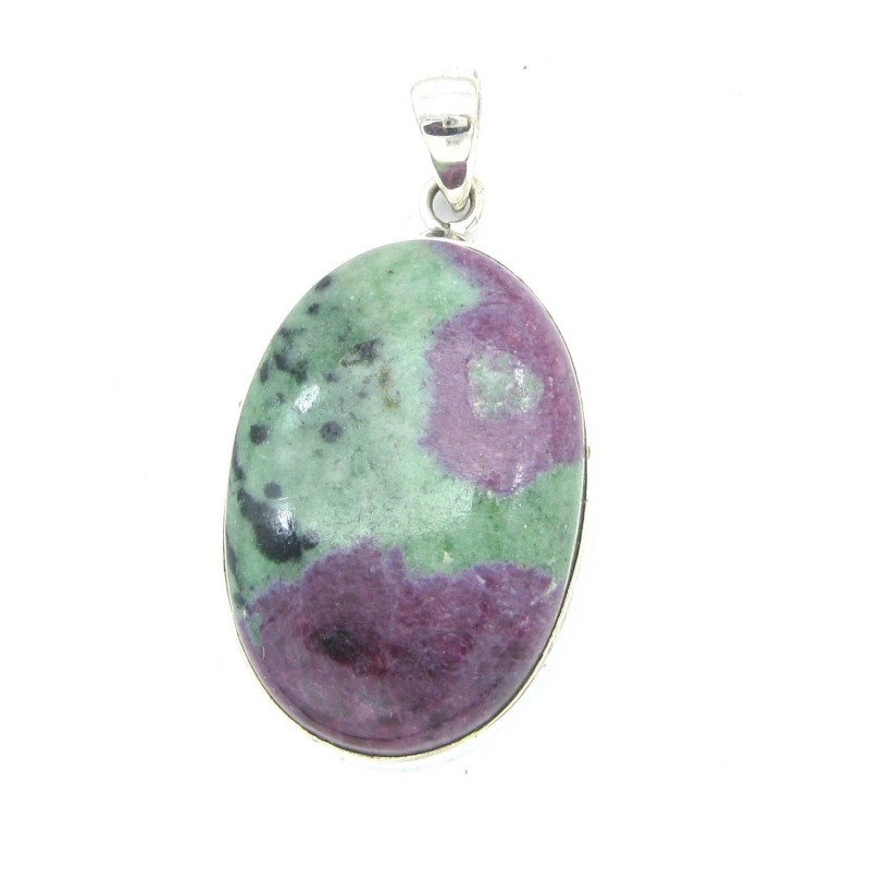 Anhänger Zoisit (Anyolith) mit Rubin Oval, 23x47 mm 925er Silber