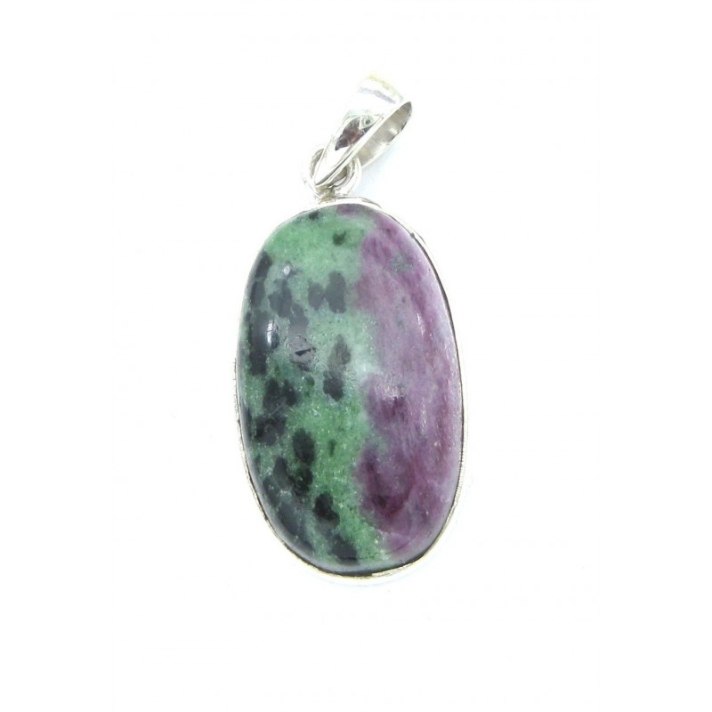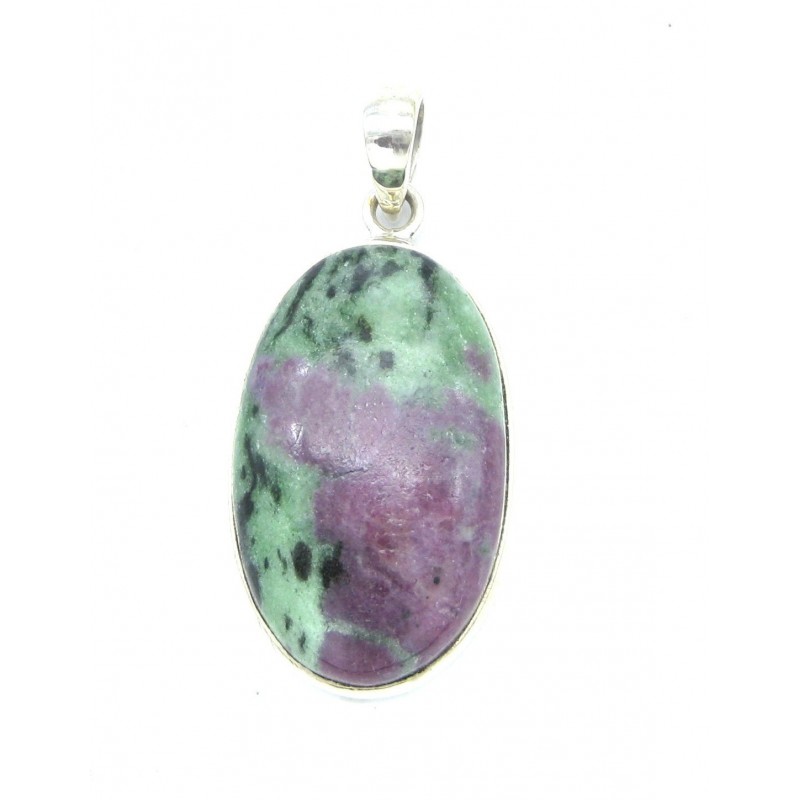 Anhänger Zoisit (Anyolith) mit Rubin Oval, 22x47 mm 925er Silber
