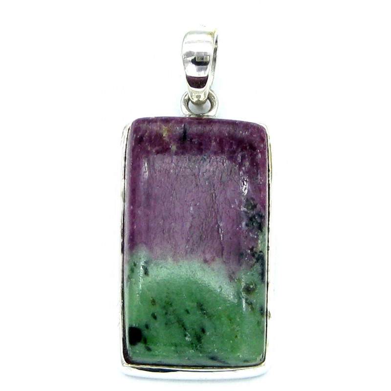 Neu Anhänger Zoisit (Anyolith) mit Rubin Rehteck, 19x43 mm 925er Silber Vergrößern