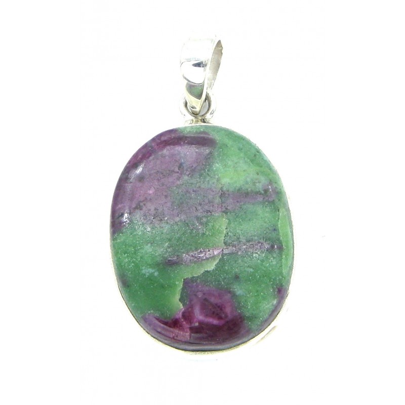 Neu Anhänger Zoisit (Anyolith) mit Rubin Oval, 24x43 mm 925er Silber Vergrößern