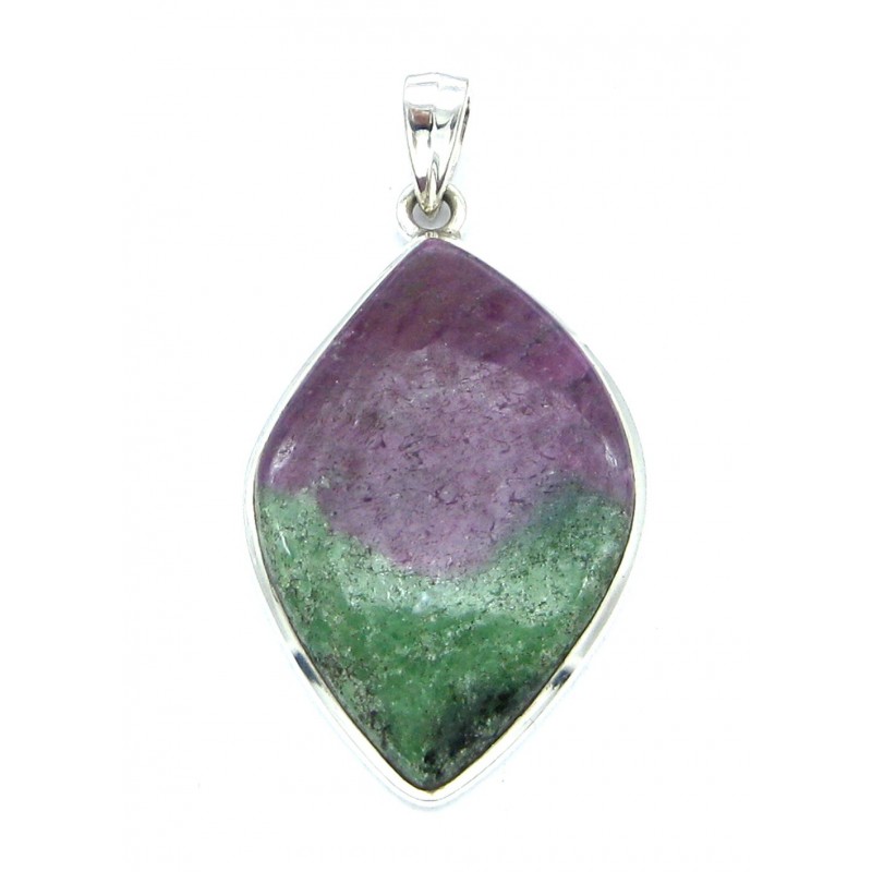 Neu Anhänger Zoisit (Anyolith) mit Rubin Blatt, 26x47 mm 925er Silber Vergrößern