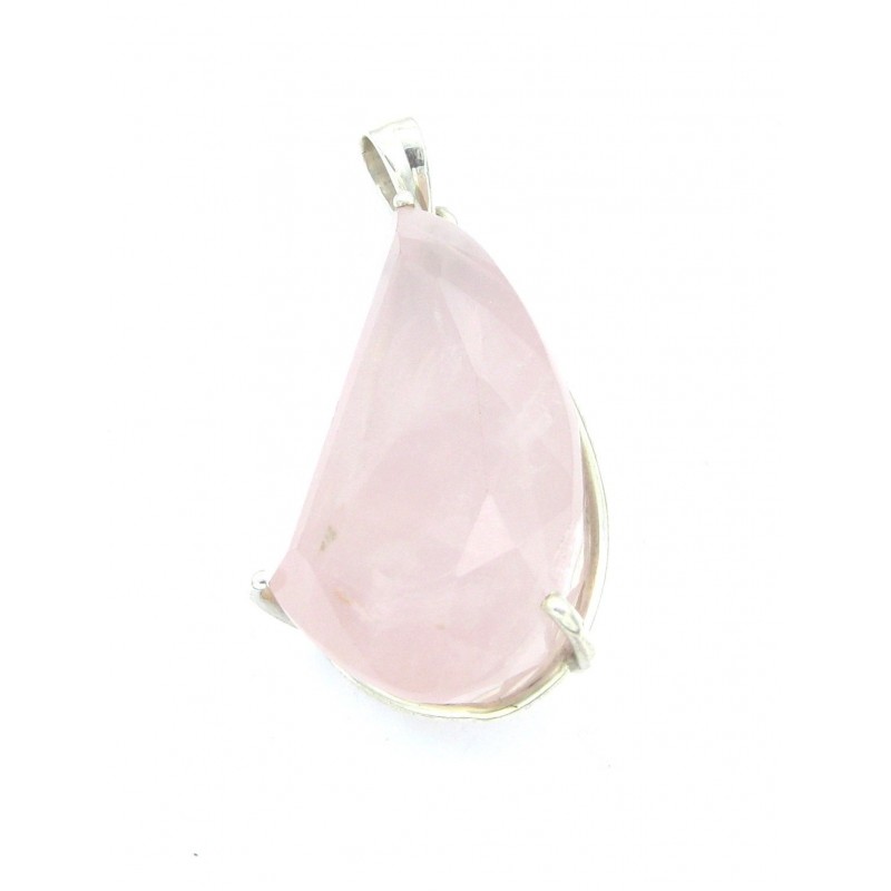 Neu Anhänger Rosenquarz facettiert Freeform 25x53 mm 925er Silber Vergrößern
