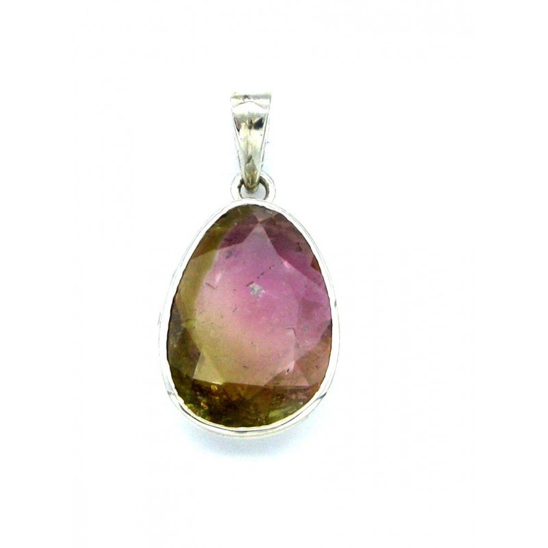 Anhänger Turmalin rot-grün facettiert Oval 16x33 mm 925er Silber
