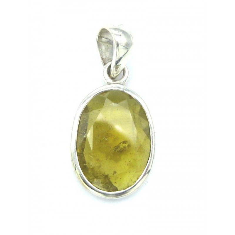 Anhänger Turmalin gelb facettiert Oval 15x34 mm 925er Silber