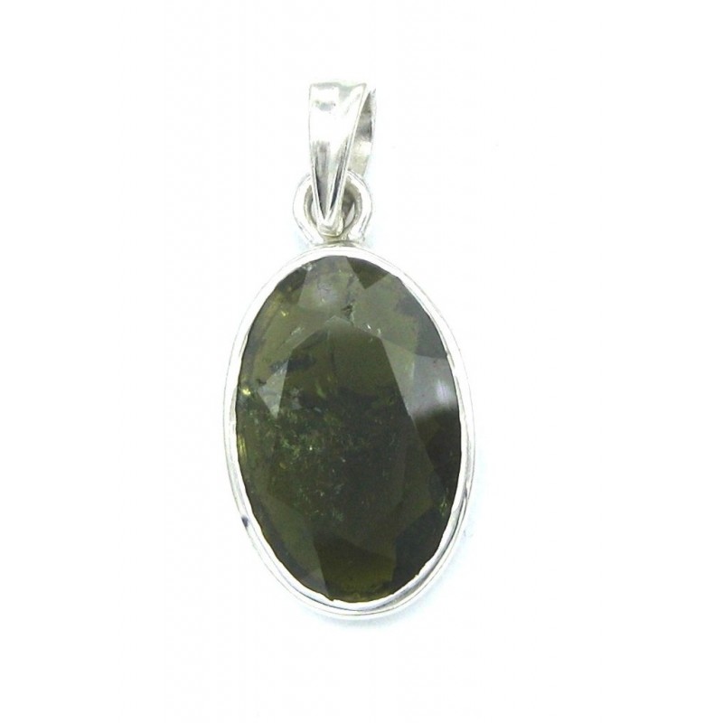 Anhänger Turmalin grün facettiert Oval 15x31 mm 925er Silber
