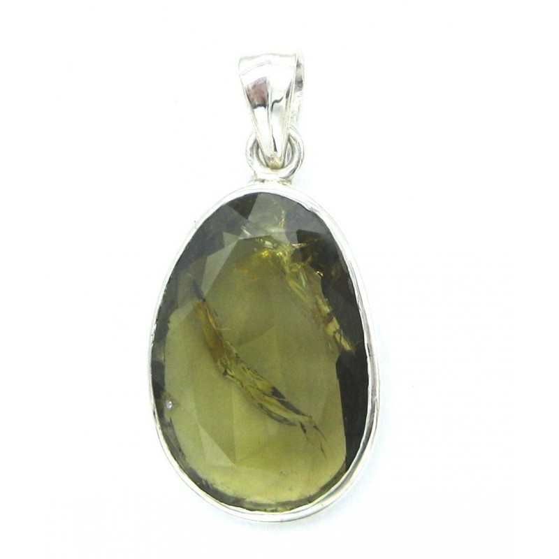Anhänger Turmalin gelb facettiert Ei 18x37 mm 925er Silber