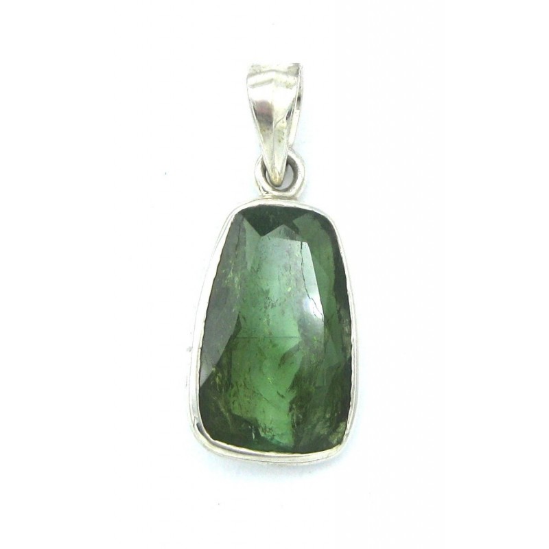 Anhänger Turmalin grün facettiert Trapez 15x34 mm 925er Silber