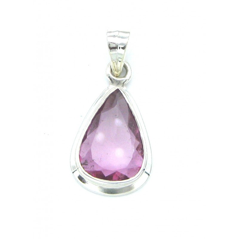 Anhänger Turmalin rot facettiert Tropfen 16x31 mm 925er Silber