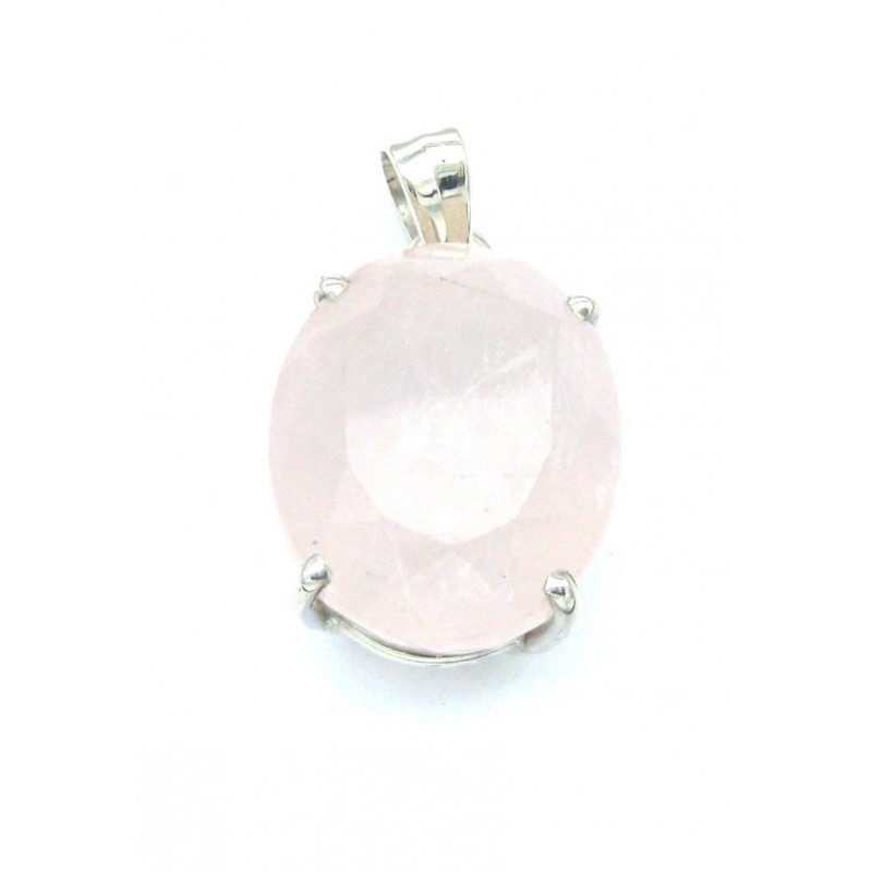 Anhänger Rosenquarz facettiert Oval 19x34 mm 925er Silber