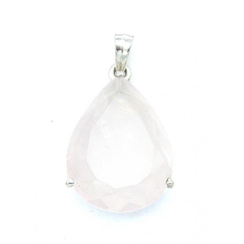 Anhänger Rosenquarz facettiert Tropfen 23x40 mm 925er Silber