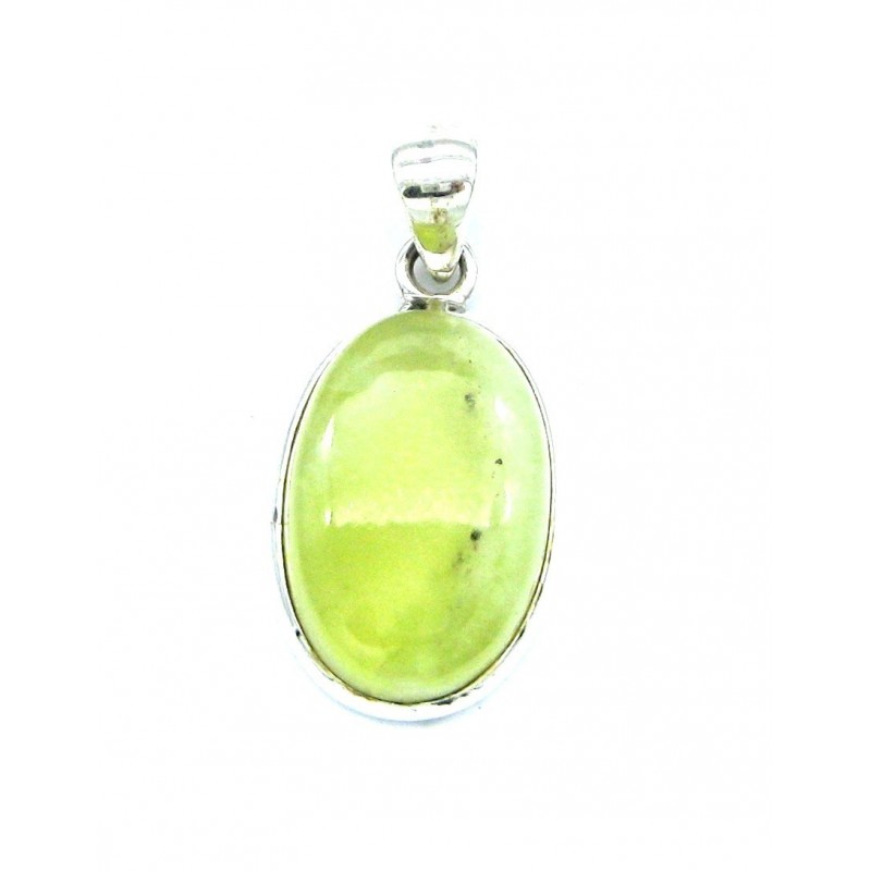 Anhänger Prehnit Oval 17x34 mm 925er Silber