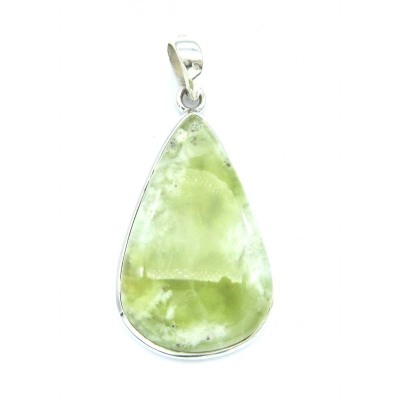 Anhänger Prehnit Tropfen 24x51 mm 925er Silber