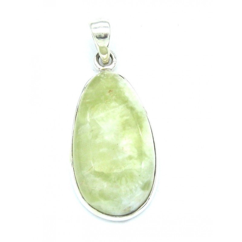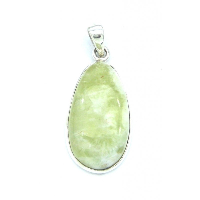 Anhänger Prehnit Tropfen 18x42 mm 925er Silber