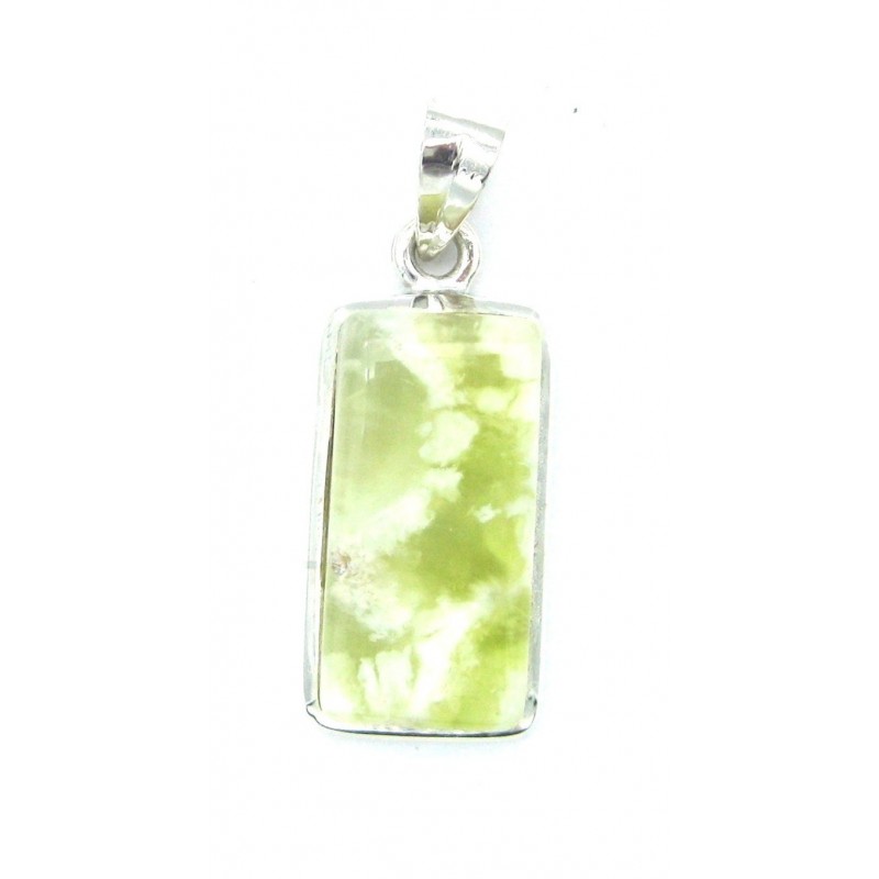 Anhänger Prehnit Rechteck 13x35 mm 925er Silber