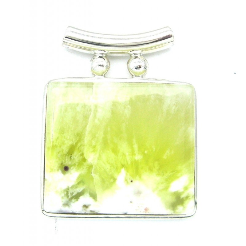 Anhänger Prehnit Pipe Rechteck 35x43 mm 925er Silber