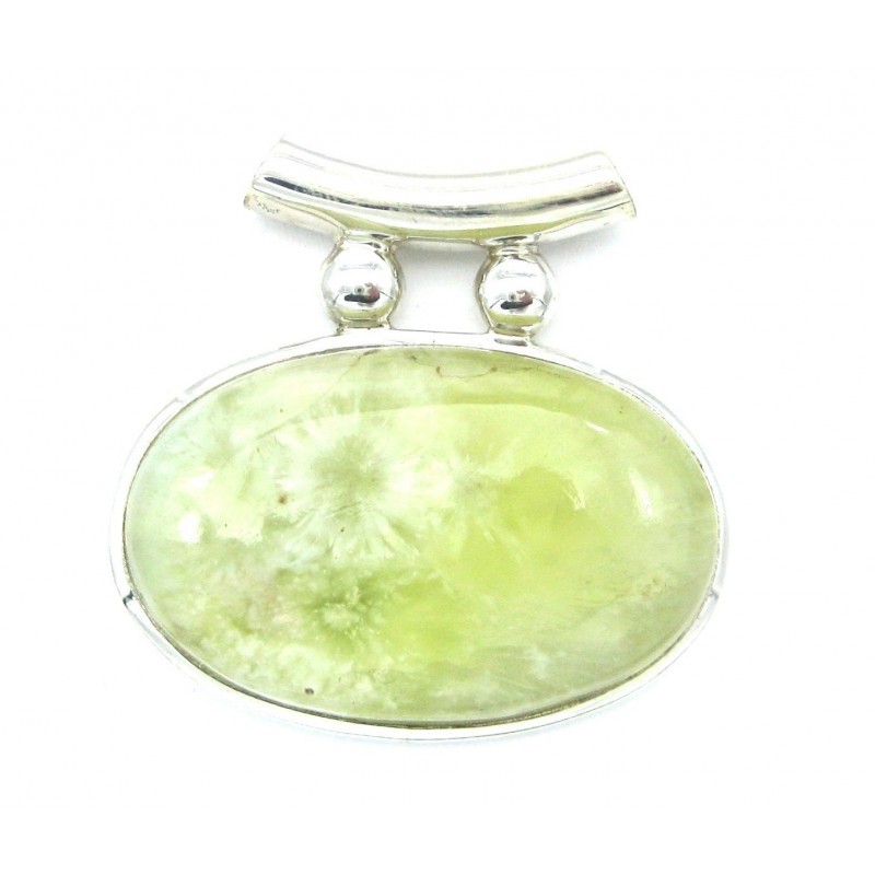 Anhänger Prehnit Pipe Oval 37x36 mm 925er Silber