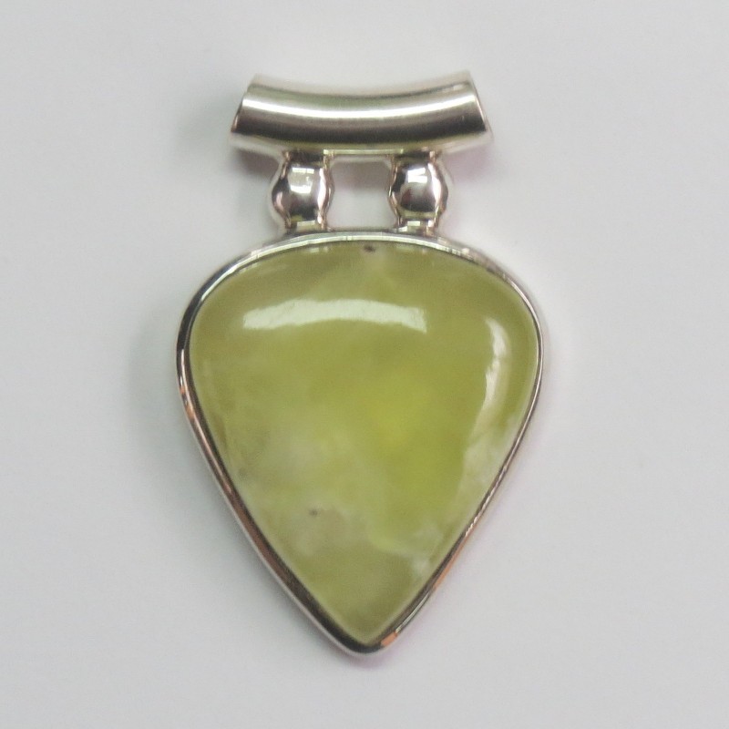 Anhänger Prehnit Pipe Tropfen 25x39 mm 925er Silber