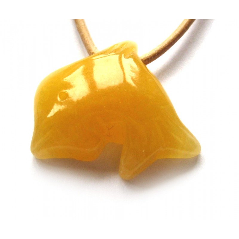 Delfin quergebohrt Calcit kleine Bohrung mit Lederband