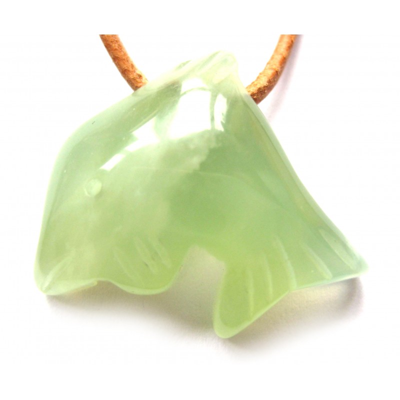 Delfin quergebohrt Serpentin grün kleine Bohrung mit Lederband