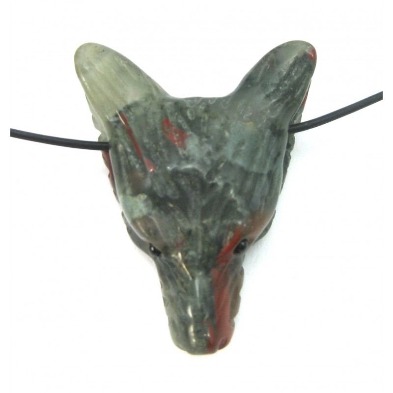 Anhänger Wolfskopf Jaspis Vulkanjaspis flach 3 x 3,5 cm