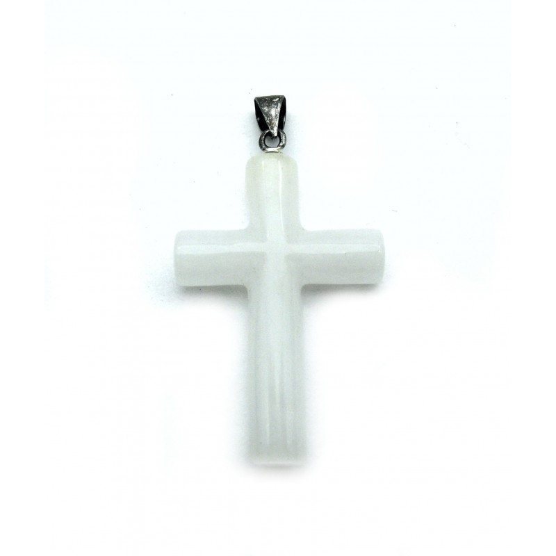 Anhänger Kreuz zylindrisch Schneequarz mit Öse