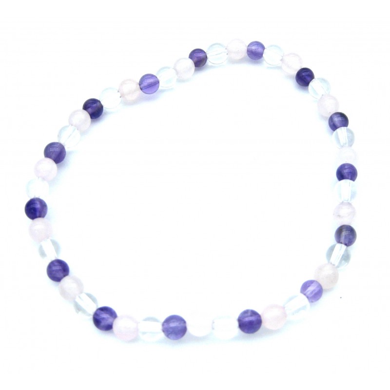 Kugel-Armband Amethyst Bergkristall Rosenquarz 4 mm