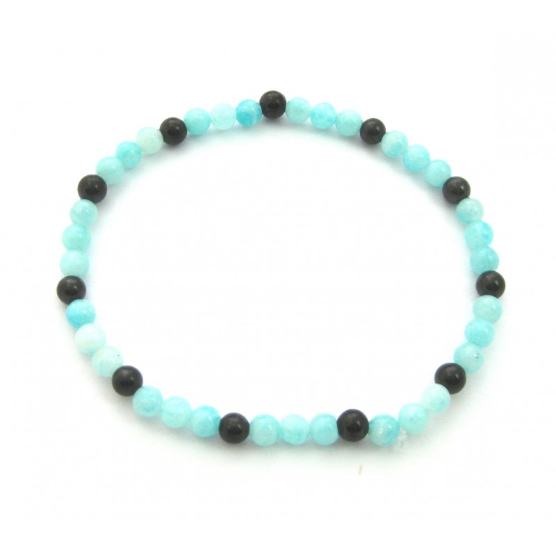 Kugel-Armband Amazonit mint mit Schungit (Steinkohle) 4 mm
