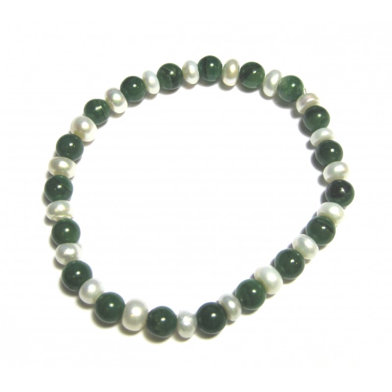 Kugel-Armband Budstone (Grünschiefer) mit Süßwasserzucht-Perle 6 mm