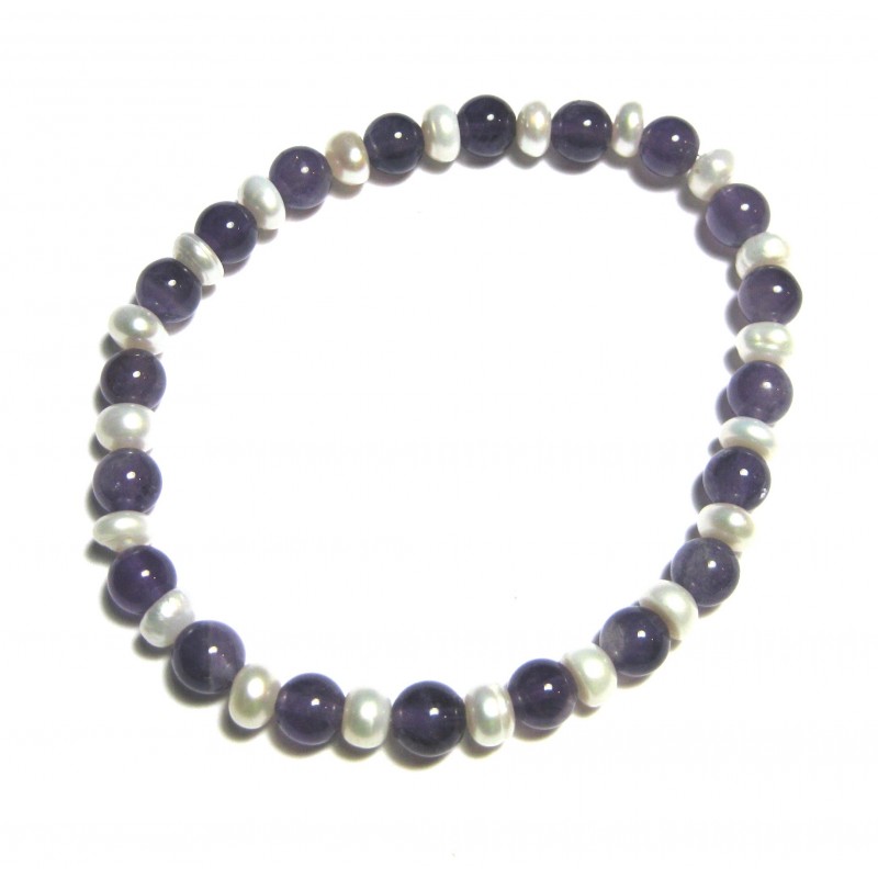 Kugel-Armband Amethyst mit Süßwasserzucht-Perle 6 mm