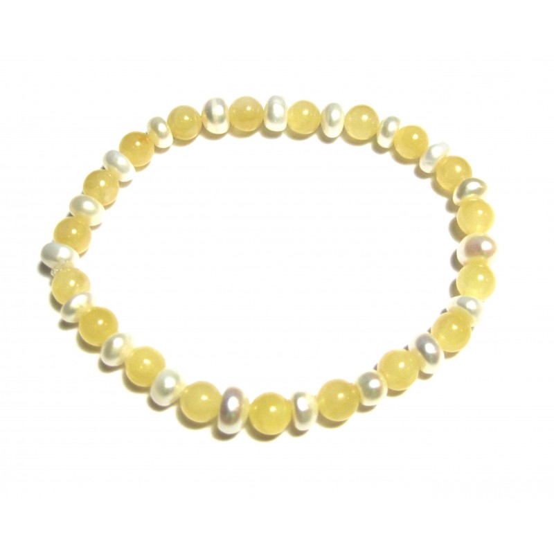 Kugel-Armband Calcit orange mit Süßwasserzucht-Perle 6 mm