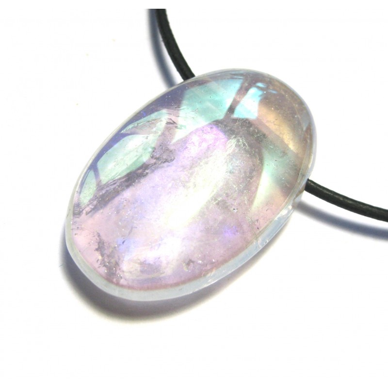 Linsenstein Angel Aura gebohrt (Bergkristall behandelt) 3 x 4,5 cm