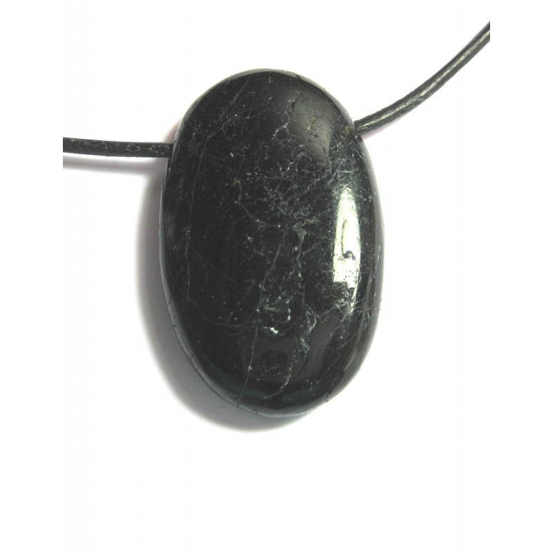 Linsenstein Turmalin schwarz (stab.) gebohrt Vergrößern