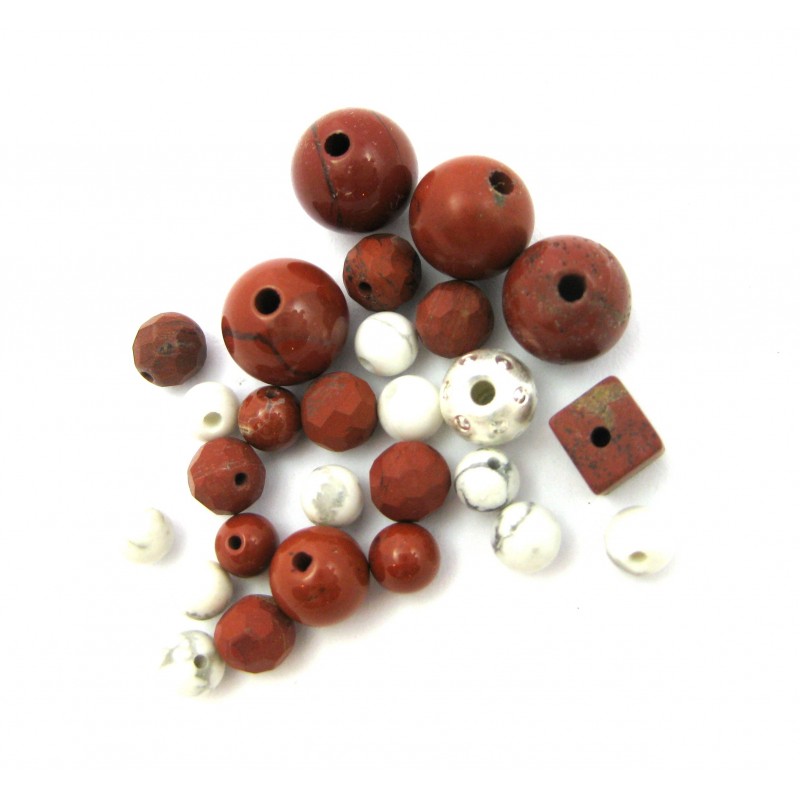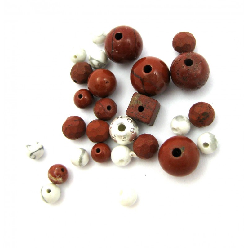 Set mit 27 Steinteile gebohrt 4-8 mm sehr kleine Bohrung mit 1 Stück Silberkugel gebohrt 6 mm