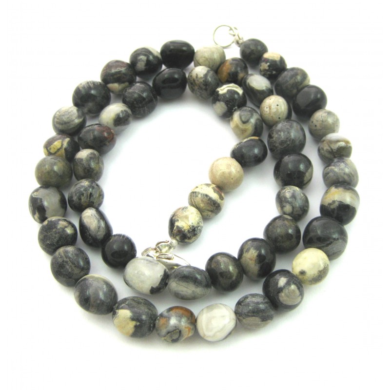 Nugget-Kette Jaspis Silver Leaf 47-48 cm
