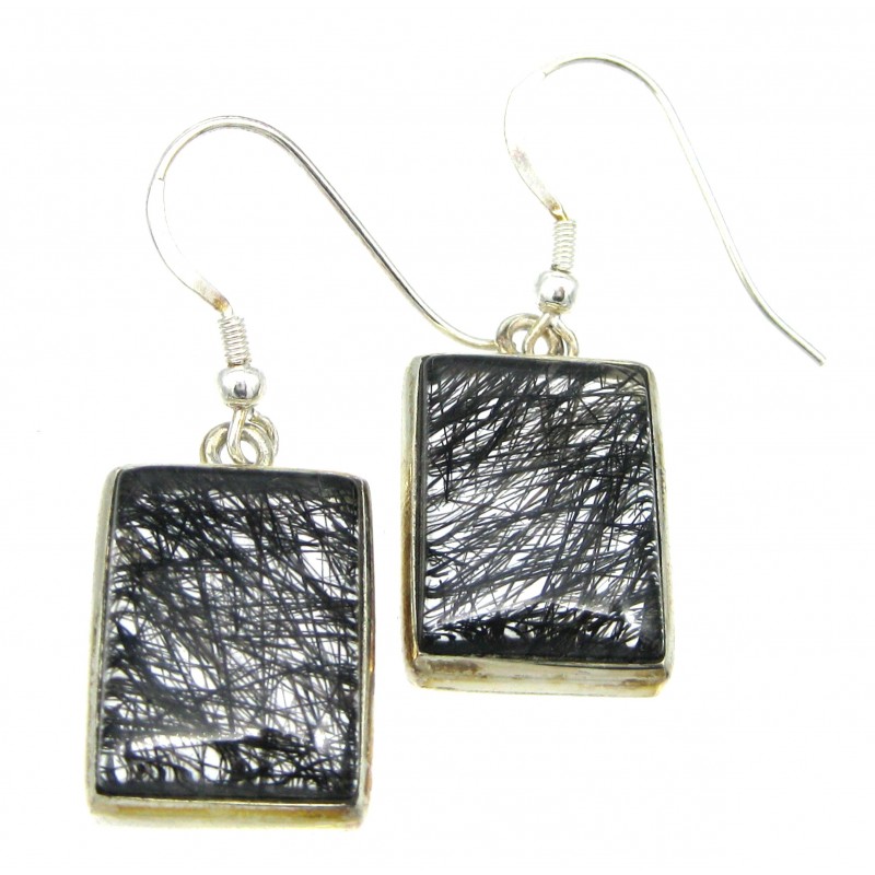 Ohrhänger Turmalinquarz Rechteck, 14x23 mm, offener Ohrhaken, 925er Silber Vergrößern