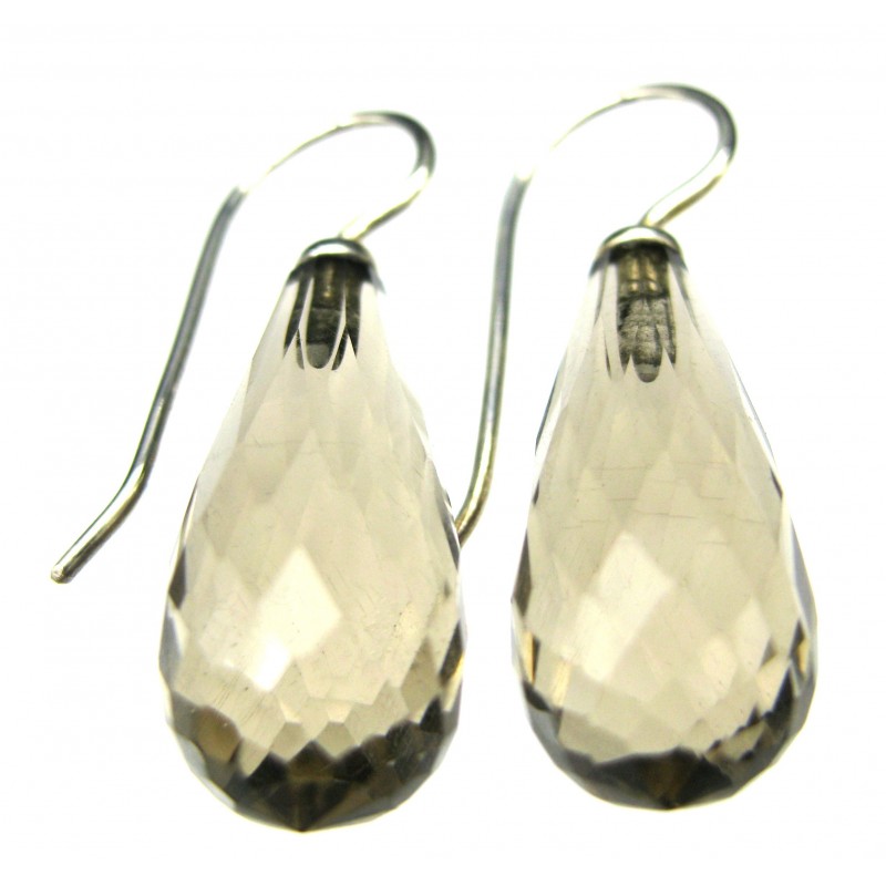 Ohrhänger Rauchquarz facettiert Pampel, 9x29 mm, offener Ohrhaken, 925er Silber