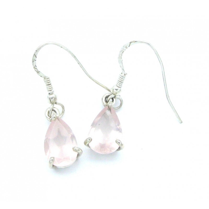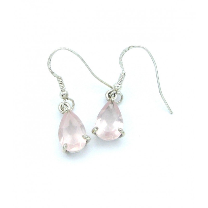 Ohrhänger Rosenquarz facettiert Tropfen 14x34 mm, 925er Silber