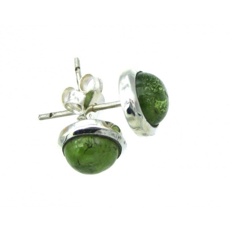 Ohrstecker Peridot Cabochon rund, 8 mm, 925er Silber