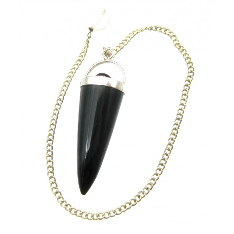 Pendel Obsidian schwarz mit Granat und Haltekugel Bergkristall konisch, 38 mm, 925er Silber