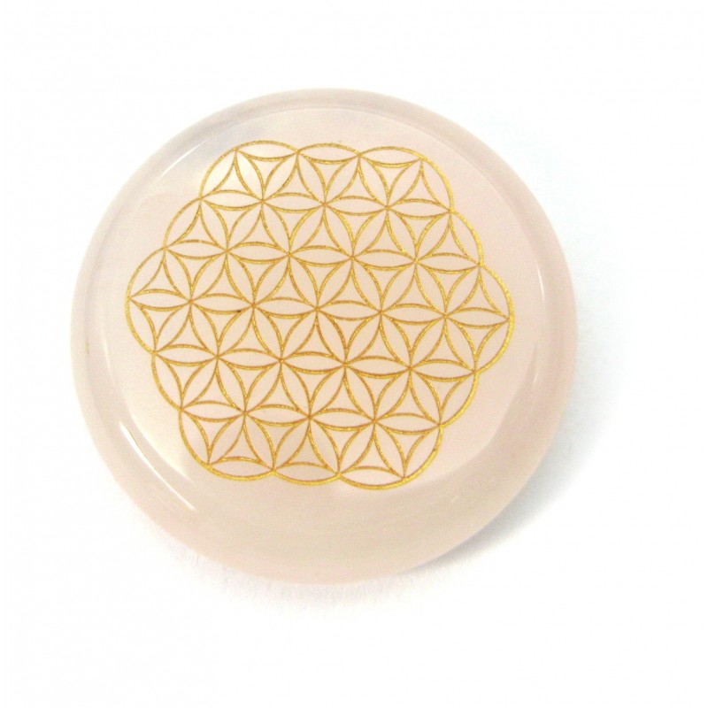 Scheibe Rosenquarz 3 cm mit Blume des Lebens